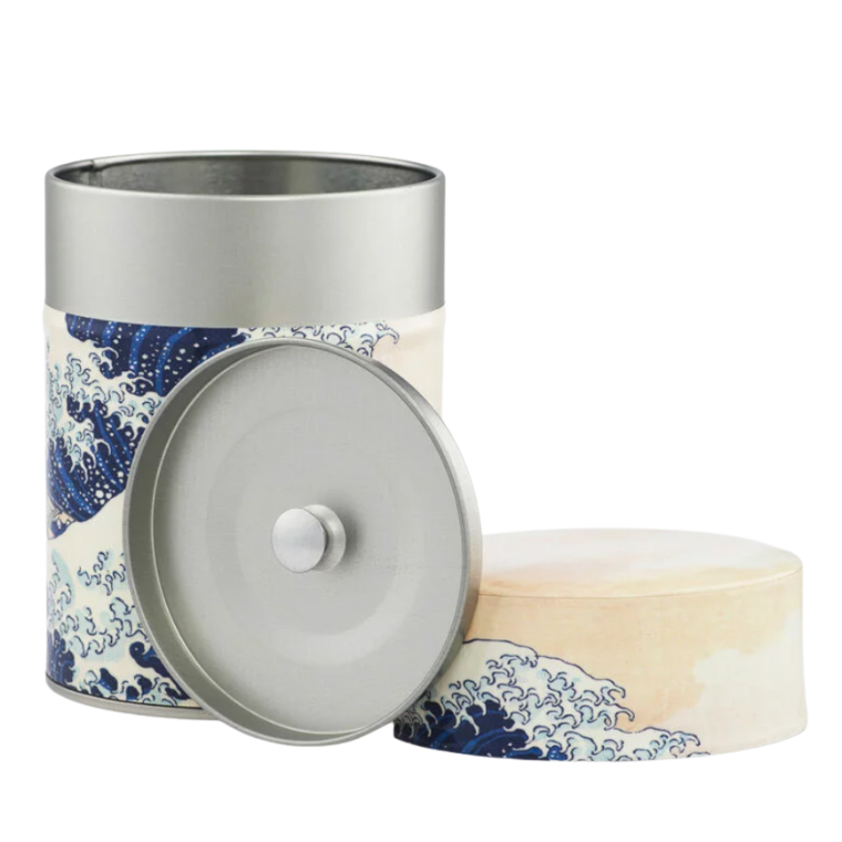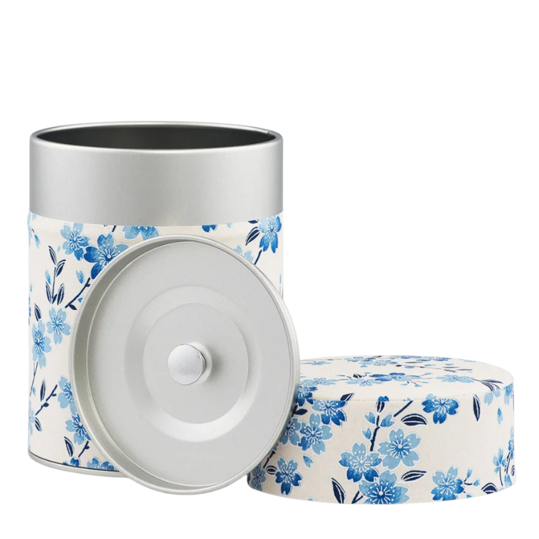 Theeblik Washi Bloemen Blauw met Hoge Deksel